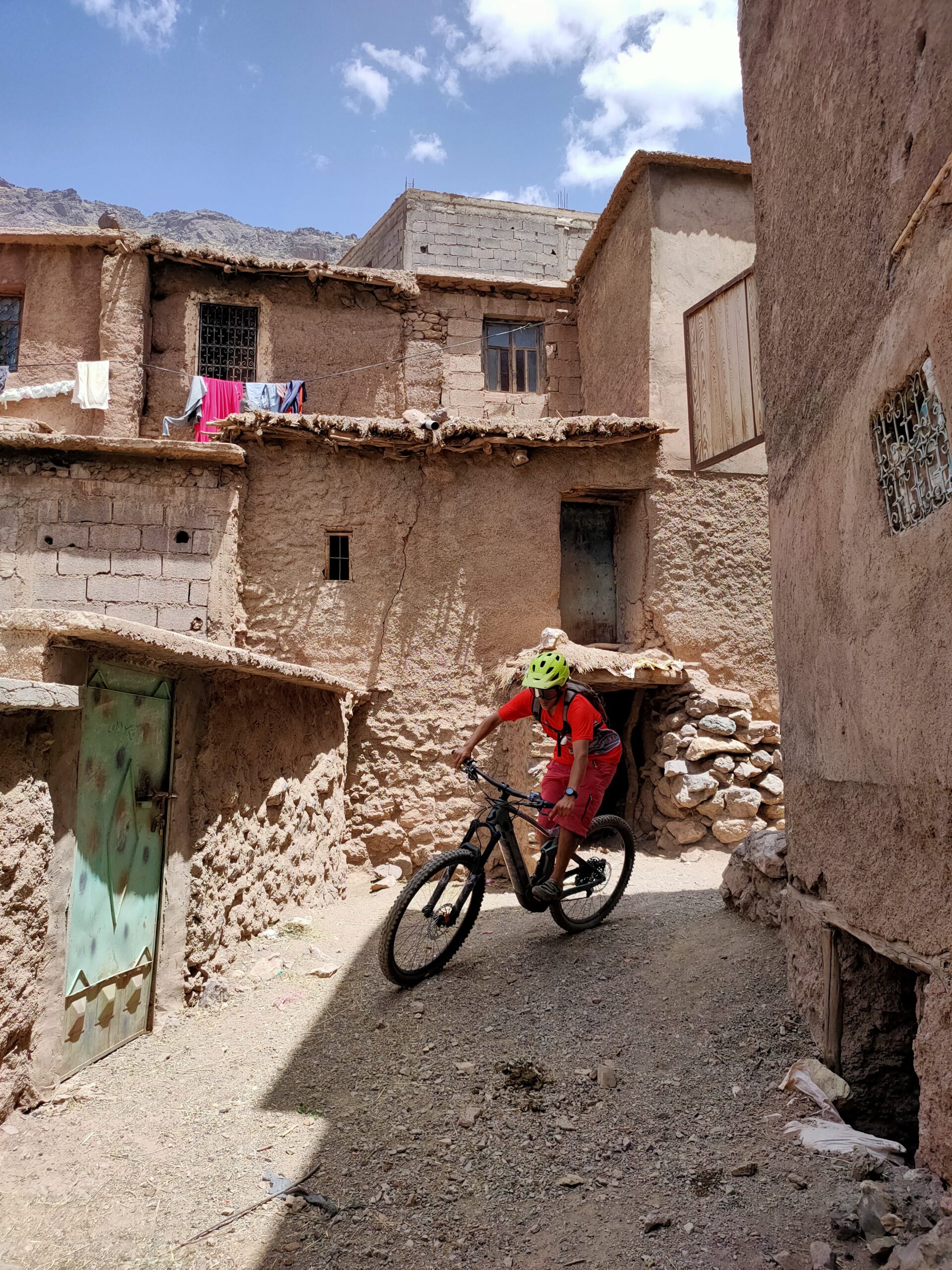 We will bike through the olive trees over to Tizi Ouzla to get to the Amezmiz valley and come into it from the top passing through many villages and riding smooth flowing off-road that go through fields and dry hills. This day will take us to Tnirte village where we can enjoy a nice hammam after long ride